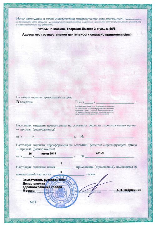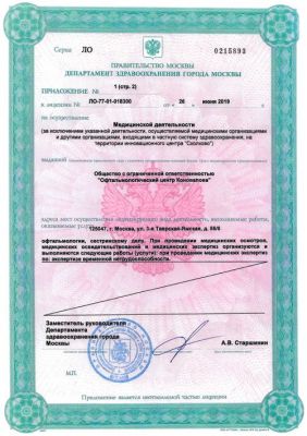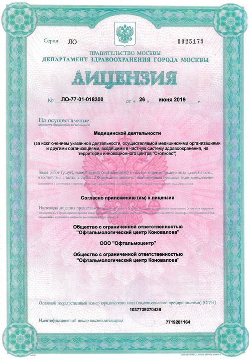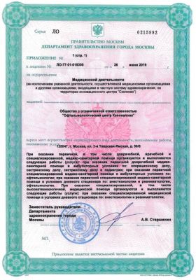 Лицензия выдана Федеральной службой по надзору в сфере здравоохранения и социального развития (Росздравнадзор).