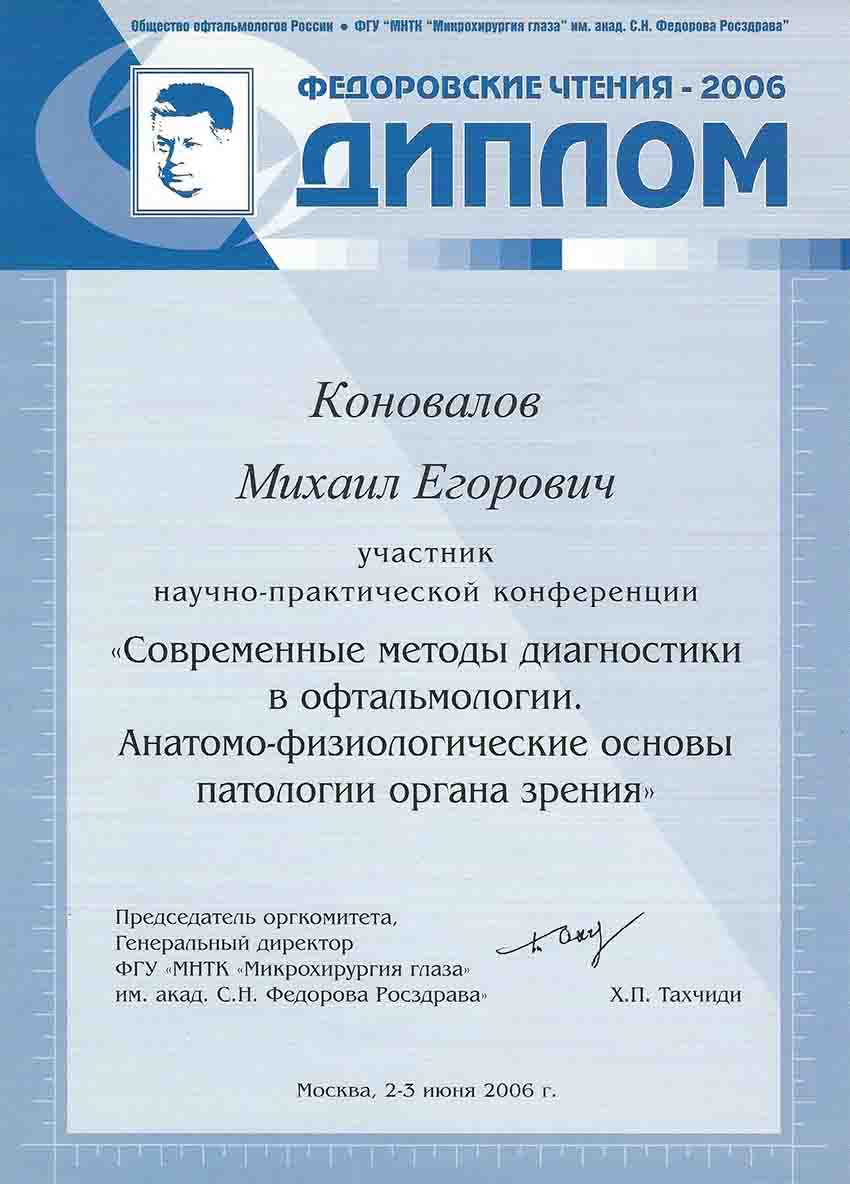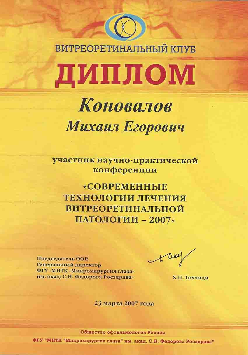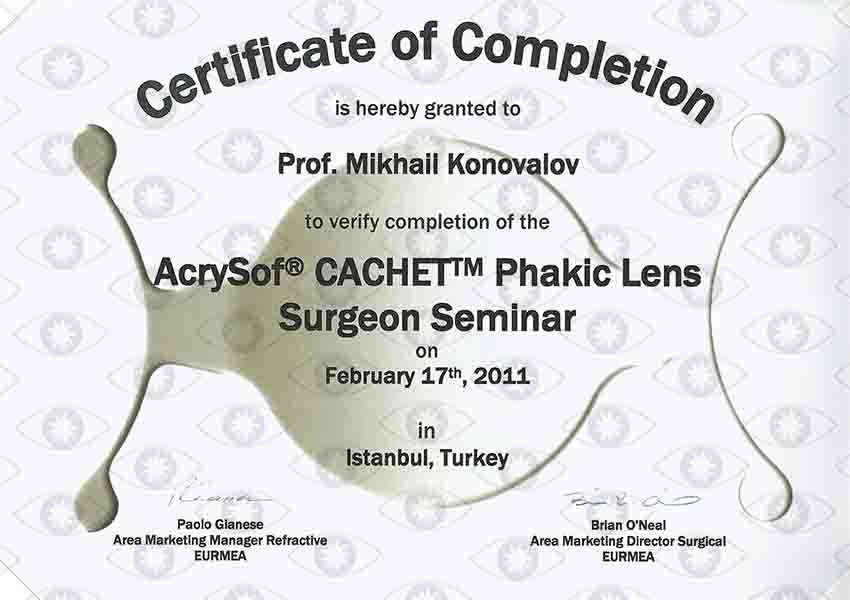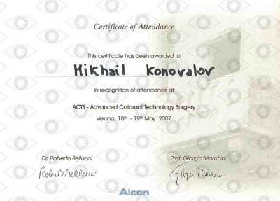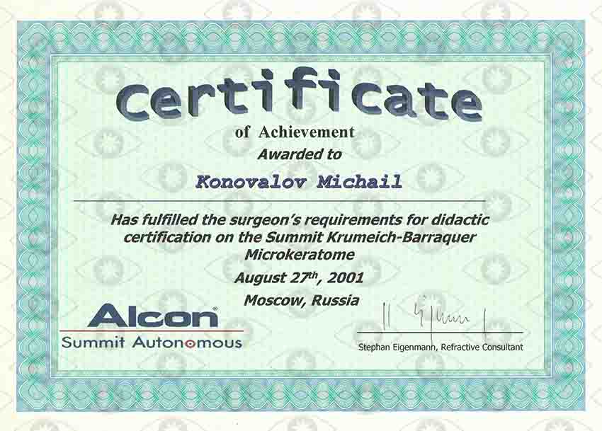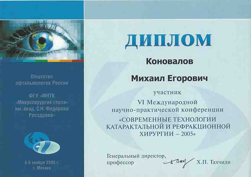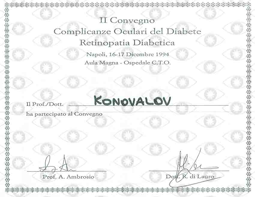 Непростым было это решение еще и потому, что Михаил Егорович в свои 27 лет должен был выполнять обязанности ведущего хирурга частной европейской клиники. Работая в большой государственной клинике – МНТК «Микрохирургия глаза», он всегда имел возможность проконсультировать больного по любому поводу и у любого специалиста, а тут пришлось начинать самостоятельную практику в условиях чужой страны. Надеяться приходилось только на себя. Кроме того, для того, чтобы получить возможность работать в Италии официально, Михаил Коновалов параллельно с работой учился и успешно закончил медицинский факультет государственного университета г. Павиа, одного из старейших и уважаемых в Европе.