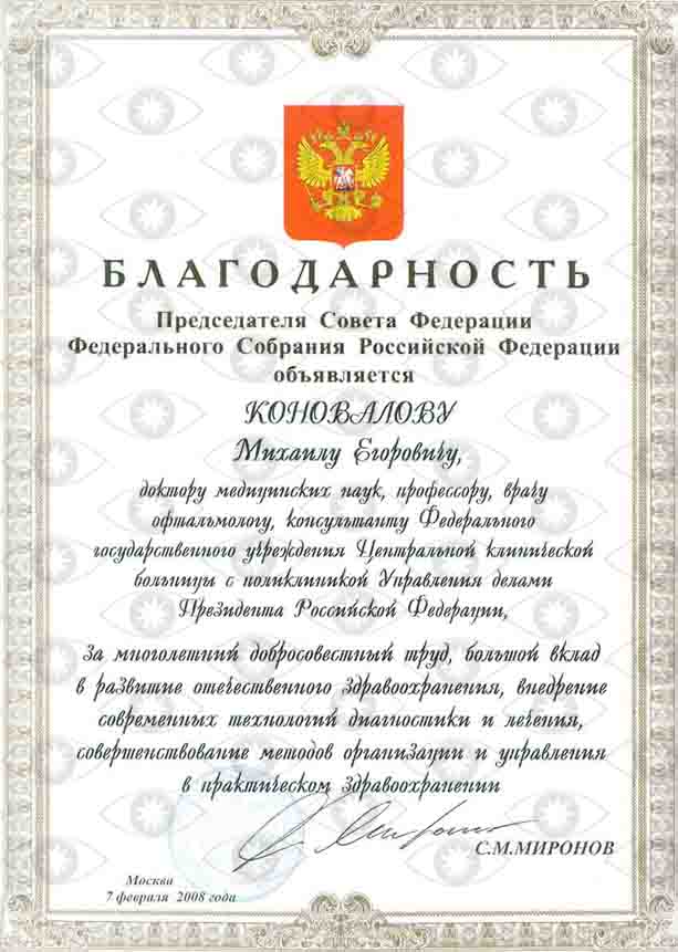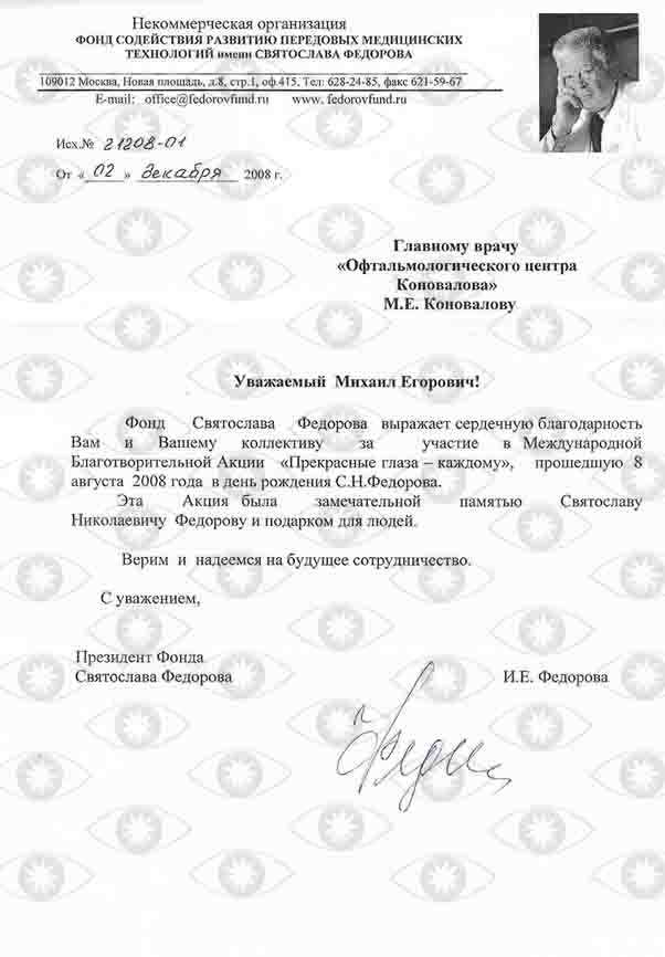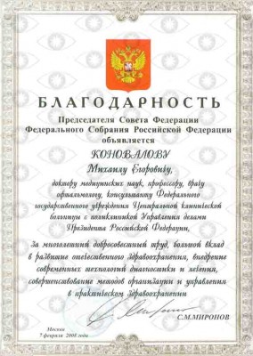 Большую роль сыграло то, что на момент открытия Михаил Егорович имел успешный опыт продвижения офтальмологических центров в Италии и Казахстане и хорошо знал этот бизнес - какой должна быть частная клиника, каким там должен быть уровень услуг, даже то, как надо встречать и провожать пациента. Таким образом, в центрах профессора Коновалова реализован весь опыт, который был накоплен им за годы работы в разных местах, собрав все самое лучшее, что по отдельности было свойственно и институту Федорова, и элитной европейской клинике, и традициям кремлевской медицины.