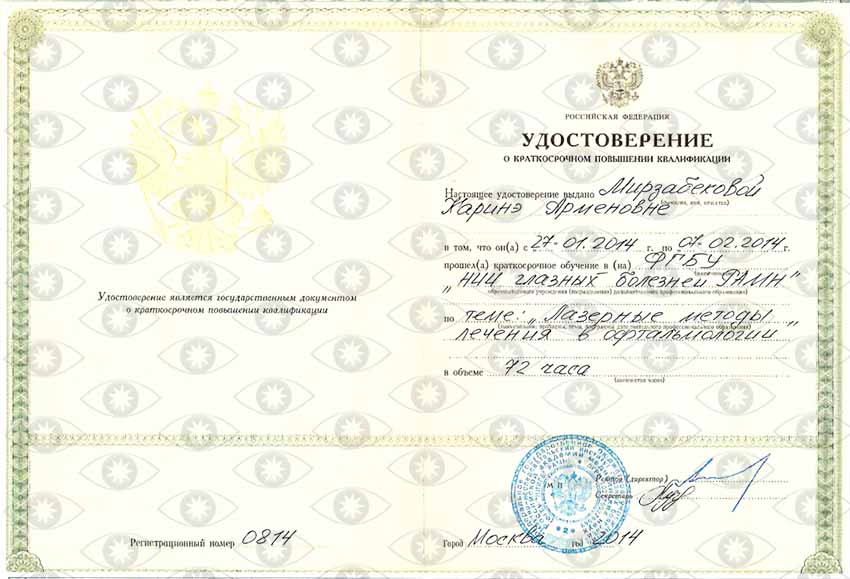 лазерный хирургВладеет современными методами диагностики и консервативного лечения, различными техниками лазерных микрохирургических вмешательств при патологии сетчатки, глаукоме. Циклоскопия (осмотр глазного дна), лазерное лечение (при патологии сетчатки, сахарном диабете, при посттравматических изменениях, вторичных катарактах, начальных формах глаукомы). Предоперационное и послеоперационное ведение пациентов после офтальмологических операций.