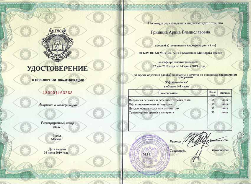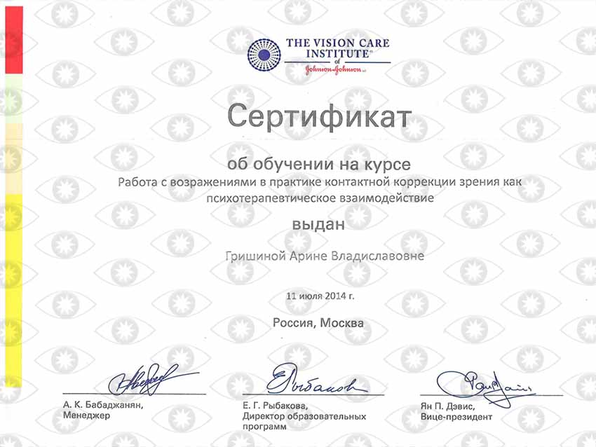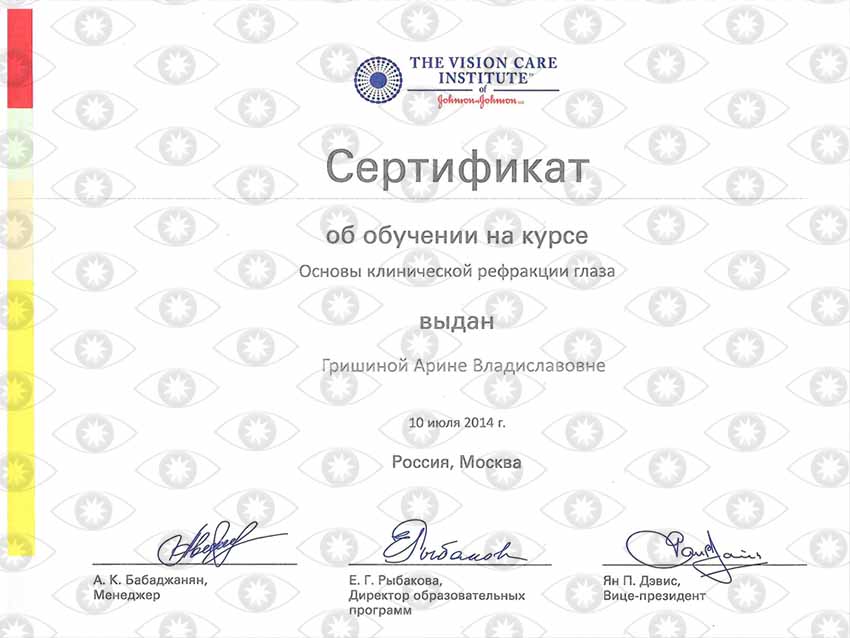 ВНИМАНИЕ: Первичное обследование проводится без контактных линз.